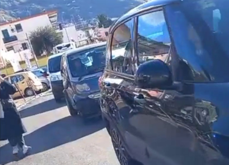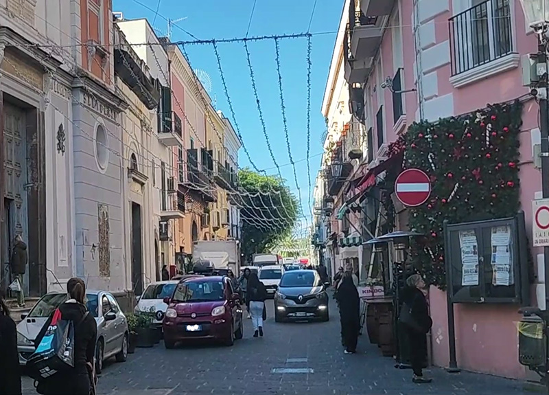 Forio centro, ore 11.30 del 4 dicembre 2025. Auto in doppia